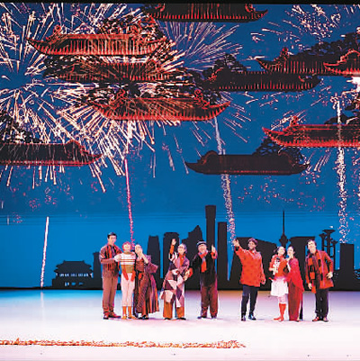 舞臺(tái)上,紅彤彤的燈籠、喜慶的春聯(lián)、熱鬧的廟會(huì)奏響了中國(guó)農(nóng)歷新年的序曲;“團(tuán)團(tuán)”和“圓圓”家的年夜飯彰顯了中國(guó)禮儀之邦的待客之道、尊老愛(ài)幼的傳統(tǒng)美德,一張全家福更傳達(dá)了中國(guó)人對(duì)親情的重視和對(duì)團(tuán)圓的向往;“胡桃?jiàn)A子”大戰(zhàn)“年”獸,則充滿(mǎn)童趣地演繹了“過(guò)年”的傳說(shuō);而當(dāng)寓意吉祥的仙鶴在蒼勁的松樹(shù)下迎著朝陽(yáng)翩翩起舞,西方芭蕾藝術(shù)在中國(guó)文化意象中煥發(fā)出了美妙的東方神韻;扇子舞、絲綢舞、風(fēng)箏舞、陀螺舞……一個(gè)個(gè)頗具中國(guó)元素的慶典場(chǎng)面讓阿聯(lián)酋觀眾游歷在瑰麗多姿的中國(guó)傳統(tǒng)文化中。