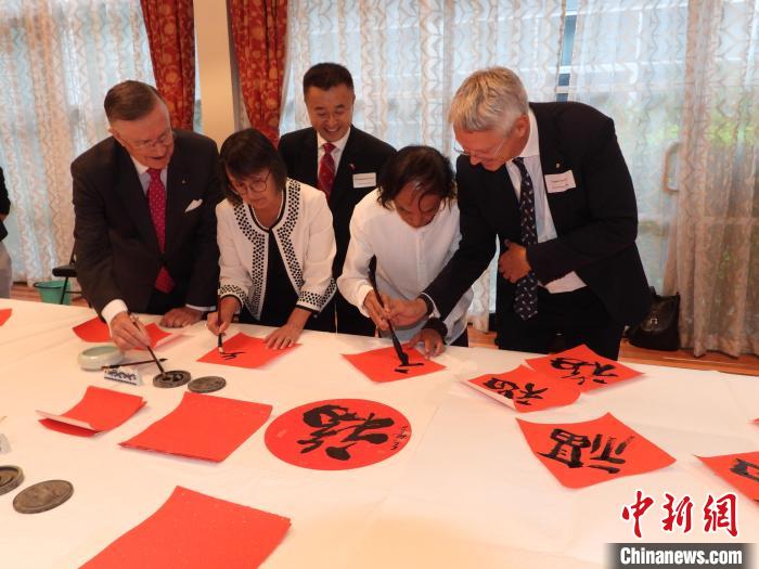 當(dāng)?shù)貢r間2月2日晚,中國駐悉尼總領(lǐng)事館在領(lǐng)館舉辦2024年春節(jié)招待會。當(dāng)晚的招待會現(xiàn)場上,來賓們互致新春祝福,并興致勃勃地體驗中國書法。記者 顧時宏 攝