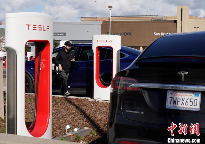 當(dāng)?shù)貢r(shí)間2月2日,車主在位于美國(guó)加州圣布魯諾一處停車場(chǎng)給特斯拉汽車充電?!≈行律缬浾?劉關(guān)關(guān) 攝