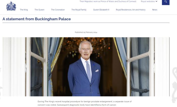 白金漢宮:英國國王查爾斯三世確診癌癥