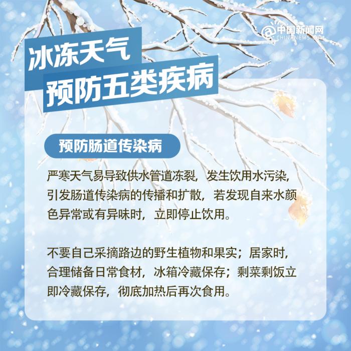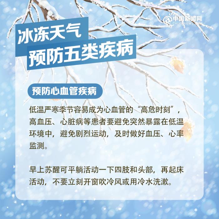中新網(wǎng)北京2月7日電 近期我國中東部地區(qū)出現(xiàn)大范圍持續(xù)性低溫雨雪冰凍天氣過程,局部地區(qū)累計(jì)降雪量將接近或超過歷史同期,雨雪覆蓋范圍廣、持續(xù)時(shí)間長、凍雨范圍大,雨雪冰凍災(zāi)害風(fēng)險(xiǎn)高,恰逢春節(jié)人員大規(guī)模流動,以下健康防護(hù)要點(diǎn)請查收。