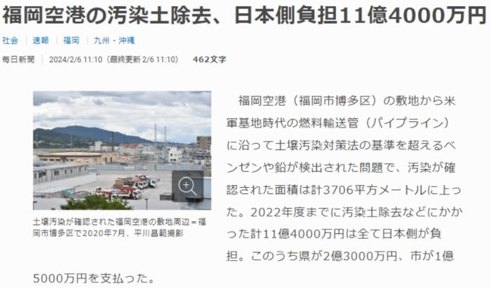 據(jù)報道,福岡機場所在地曾為美軍基地,1972年返還給日方,污染區(qū)域基本都是當年美軍基地的燃料輸送管沿線。