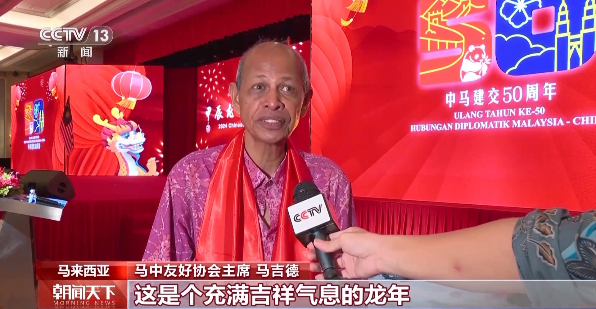 馬中友好協(xié)會(huì)主席 馬吉德:這是個(gè)充滿吉祥氣息的龍年,我知道龍?jiān)谥袊?guó)文化中是一個(gè)非常重要,富有傳奇色彩的象征,我們預(yù)祝龍年中馬兩國(guó)人民建立起更加穩(wěn)定、繁榮和堅(jiān)固的友誼。(央視新聞客戶端)