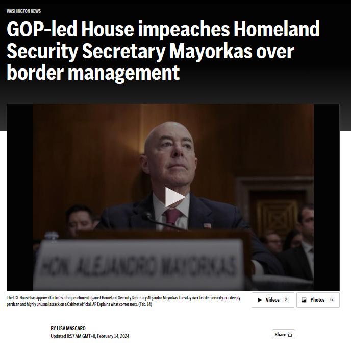 另據(jù)美國全國廣播公司(ABC)報道,國土安全部發(fā)言人和馬約卡斯紛紛指責(zé),共和黨彈劾后者的指控“毫無根據(jù)”。