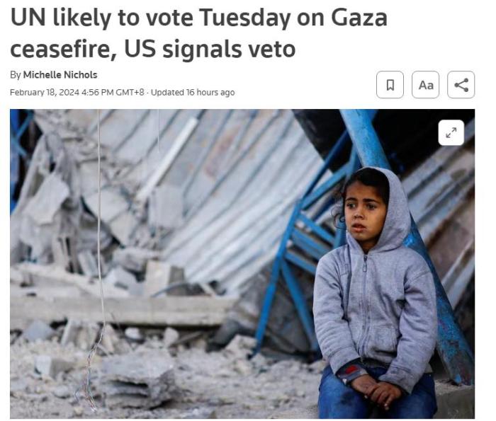 中新網(wǎng)2月19日電 綜合報(bào)道,外交人士表示,聯(lián)合國安理會(huì)或?qū)⒃诋?dāng)?shù)貢r(shí)間20日就阿爾及利亞提出的加沙人道?;饹Q議進(jìn)行投票,但美國暗示將在該投票中實(shí)施一票否決。