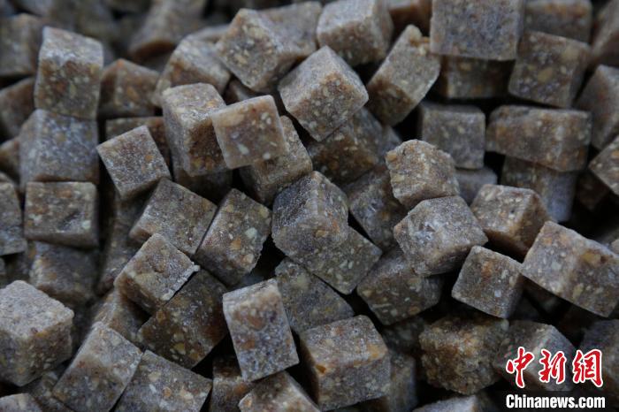 晉祠桂花元宵,餡料是靈魂。傳統(tǒng)晉祠桂花元宵的餡料需要將核桃、芝麻、花生翻炒去皮后,再把糖稀加熱化開(kāi),加入白糖、冰糖、純天然玫瑰花醬和桂花醬翻炒,炒制完成后放入模子壓實(shí)搟平,晾曬切塊。