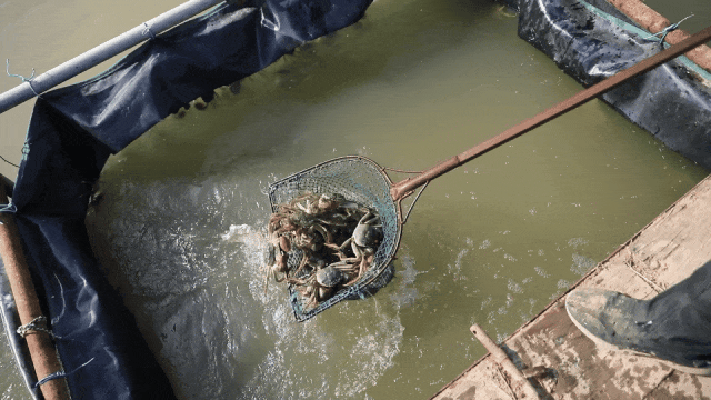 每年3月放苗,9月中下旬進(jìn)入大閘蟹捕撈旺季,將大閘蟹銷往全國多地。每年12月底,大閘蟹全部清塘。次年1月至3月,進(jìn)行塘底清淤、消毒。3月開始放水、放苗,開始新一輪的養(yǎng)殖工作。