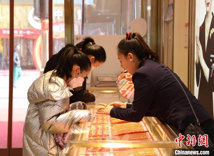 2024年2月,市民在商場內(nèi)選購黃金飾品。 中新社記者 于晶 攝