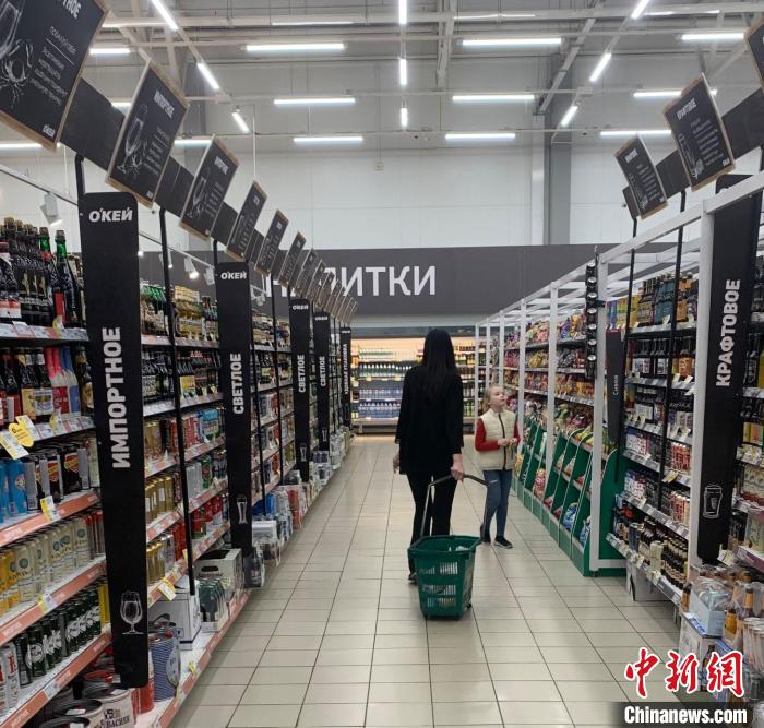 2023年10月,俄羅斯圣彼得堡一超市內(nèi)的酒類銷售區(qū)?!≈行律缬浾?商永 攝