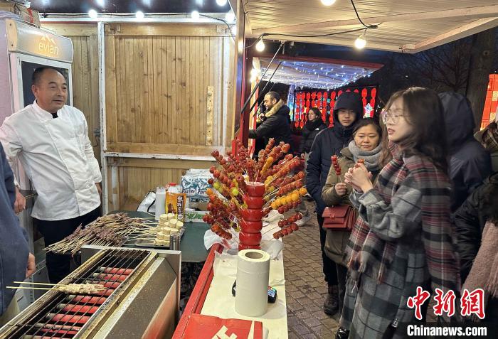 文藝表演結(jié)束后,來賓們參觀了元宵燈會。以2024年的生肖“龍”和《山海經(jīng)》中各種充滿神秘感和想象力的“神獸”為“主角”,以獨具特色的傳統(tǒng)非遺工藝結(jié)合新科技、新材質(zhì),營造出了“山海之間,自在有靈”的夢幻奇境。嘉賓們穿梭于形態(tài)各異的璀璨花燈間,各式奇珍異獸、神花仙草映入眼簾?!吧胶S徐`”的題目是巧妙借用了“山海友鄰”的諧音,寓意中法兩國即使相隔山海,始終友誼長存的深刻含義。從遠古生活圖卷走到煙火市集,中華傳統(tǒng)小吃琳瑯滿目,南翔小籠包、冰糖葫蘆、手工刀削面……各式佳肴令人垂涎欲滴,往來品嘗的公眾絡(luò)繹不絕?!吧嗉馍系闹袊钡拿朗丑w驗,讓參與者更加深入地感受到了中國傳統(tǒng)文化的多元魅力。