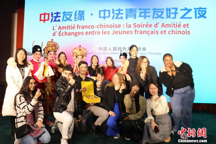 中新網(wǎng)北京2月25日電(黃方)2024年是中法建交60周年暨中法文化旅游年,形式多樣的人文交流活動(dòng)陸續(xù)開(kāi)展。2月23日晚,元宵佳節(jié)前夕,應(yīng)中國(guó)人民對(duì)外友好協(xié)會(huì)(以下簡(jiǎn)稱(chēng):全國(guó)對(duì)外友協(xié))邀請(qǐng),歐中友好協(xié)會(huì)(以下簡(jiǎn)稱(chēng):歐中友協(xié))青少年代表團(tuán)、法國(guó)人民援助會(huì)青年代表團(tuán)和中國(guó)戲曲學(xué)院師生等150人在北京參加“中法友緣·中法青年友好之夜”聯(lián)歡活動(dòng),開(kāi)啟中法青年友好交流周。