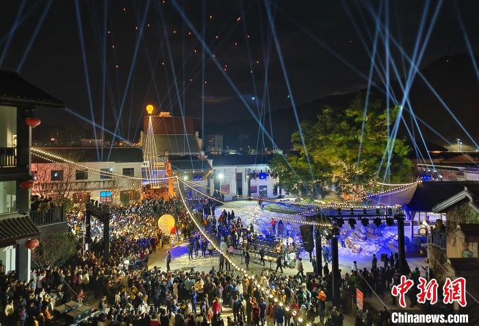 賴(lài)聲川歷時(shí)多年在家鄉(xiāng)江西會(huì)昌打造的會(huì)昌戲劇小鎮(zhèn)開(kāi)幕,燈光秀現(xiàn)場(chǎng)人氣爆棚。(受訪者供圖)