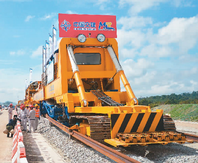 馬來西亞東海岸鐵路項(xiàng)目軌道工程啟動(dòng)儀式現(xiàn)場(chǎng)。