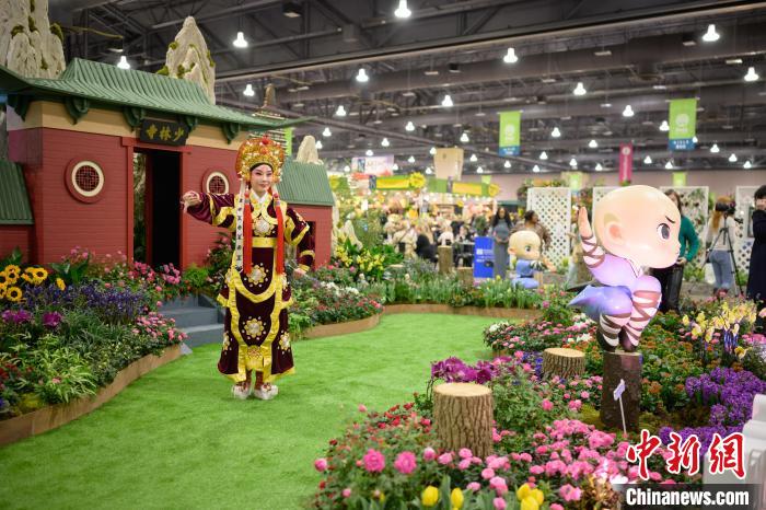 當?shù)貢r間3月2日,一年一度的費城花展在美國賓夕法尼亞州費城開幕,以“功夫鄭州——花俏嵩山”為主題的鄭州展園當天在花展上亮相。圖為鄭州市豫劇院演員袁娜表演豫劇?!ranck Zhou 攝