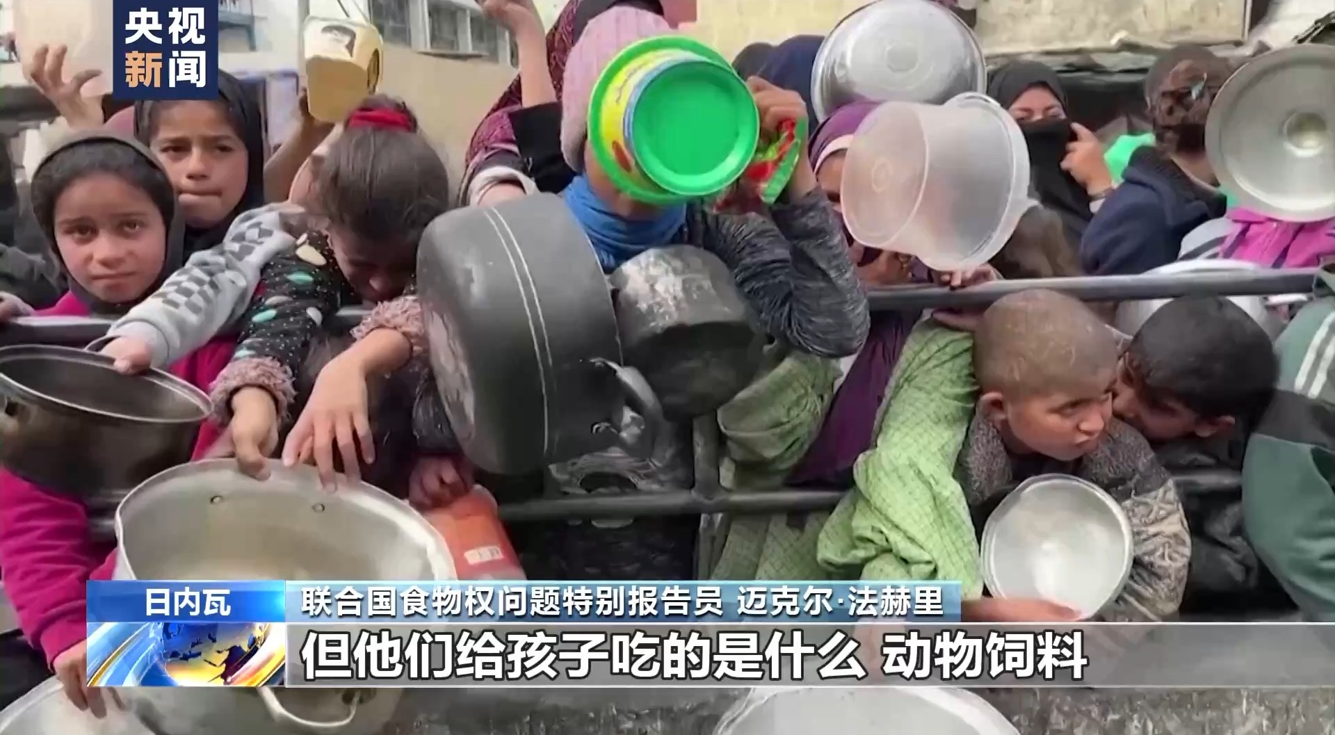 聯(lián)合國食物權(quán)問題特別報告員 邁克爾·法赫里:在加沙地帶很多人已經(jīng)放棄吃飯,把食物留給孩子。但他們給孩子吃的是什么?動物飼料。他們給孩子喝什么水?臟水。這會讓他們的孩子更容易生病。