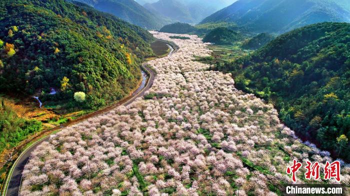中新網(wǎng)紹興3月10日電(項菁)眼下,隨著天氣漸暖,位于浙江紹興上虞區(qū)章鎮(zhèn)鎮(zhèn)的“中國最美櫻花谷”——張村櫻花谷逐漸熱鬧起來。每到3月,綿延于山谷中的600多畝櫻花就會漸次綻放,朵朵櫻花不僅吸引客流,還帶動農(nóng)戶在家門口創(chuàng)收。