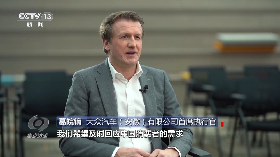大眾汽車(安徽)有限公司首席執(zhí)行官 葛皖鏑:借助于這個研發(fā)中心,我們希望及時回應(yīng)中國消費者的需求,這意味著一方面,我們要打造大眾汽車集團(tuán)首個專屬中國市場的電動汽車平臺;另外一方面,我們希望將其開發(fā)周期縮短約30%,這樣才能夠跟上中國市場的步伐。