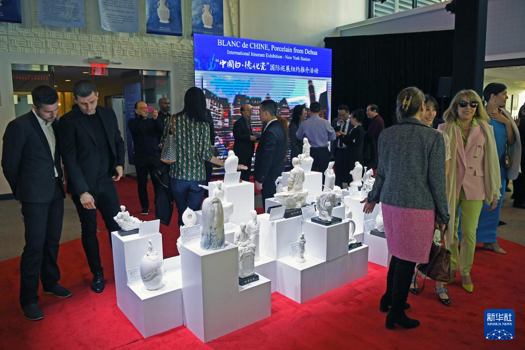 3月14日,在美國(guó)紐約,人們參加“中國(guó)白·德化瓷”國(guó)際巡展紐約推介活動(dòng)。新華社記者 李睿 攝