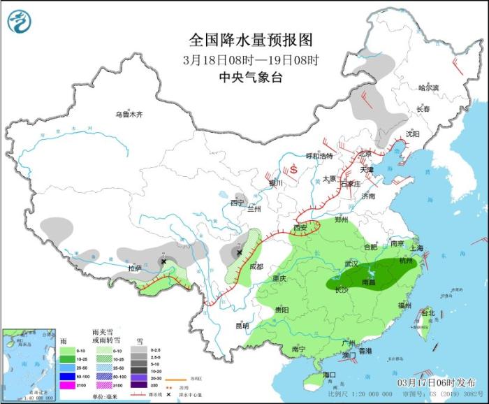 全國降水量預報圖(3月17日08時-18日08時)圖片來源:中央氣象臺網站