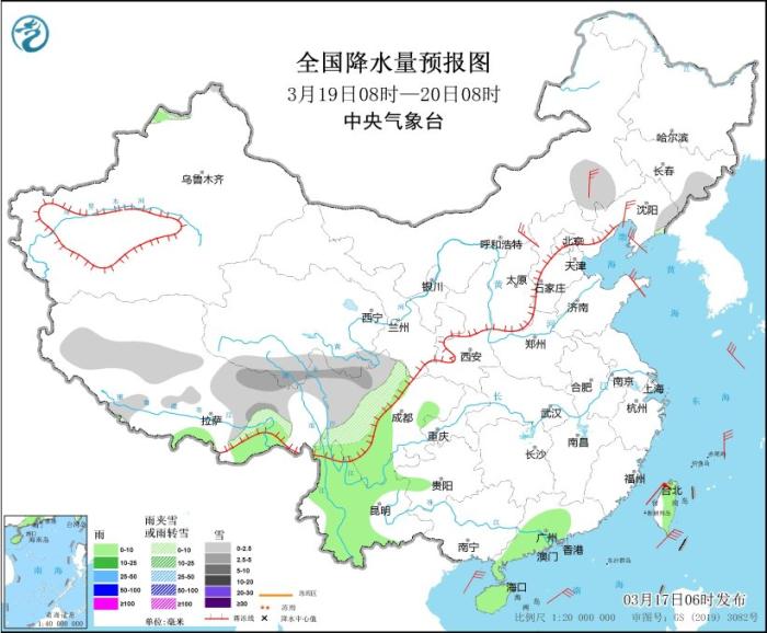 全國降水量預報圖(3月19日08時-20日08時)圖片來源:中央氣象臺網站