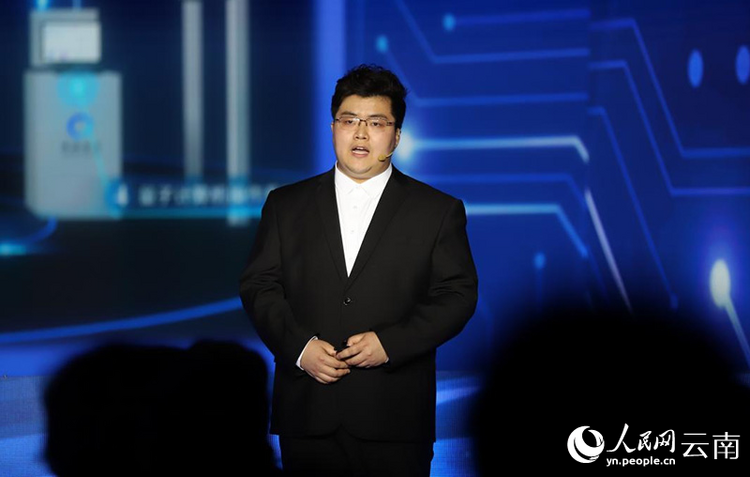 本源量子計(jì)算科技(合肥)股份有限公司市場運(yùn)營總監(jiān)俞書林介紹量子計(jì)算。人民網(wǎng)記者 李發(fā)興攝