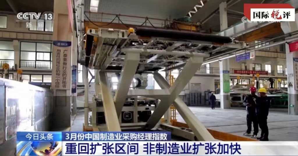 中國官方最新數(shù)據(jù)顯示,今年3月的PMI、非制造業(yè)商務(wù)活動指數(shù)和綜合PMI產(chǎn)出指數(shù)分別為50.8%、53.0%和52.7%,比上月上升1.7、1.6和1.8個百分點,均位于50%以上的擴張區(qū)間。其中3月份制造業(yè)活動出現(xiàn)半年來首次擴張,并且創(chuàng)下一年來新高。對此,美國彭博社等外媒稱,這表明中國制造業(yè)前景趨于樂觀,整體經(jīng)濟正在企穩(wěn)。
