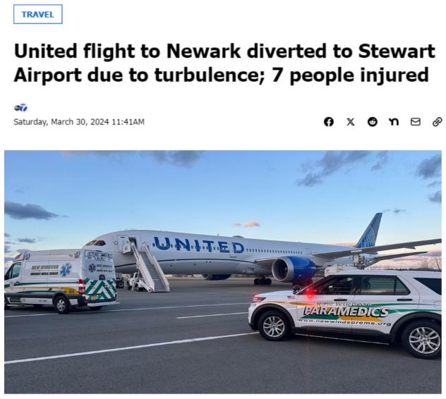 美聯(lián)航一航班突遇大風(fēng)!致15人受傷7人就醫(yī)