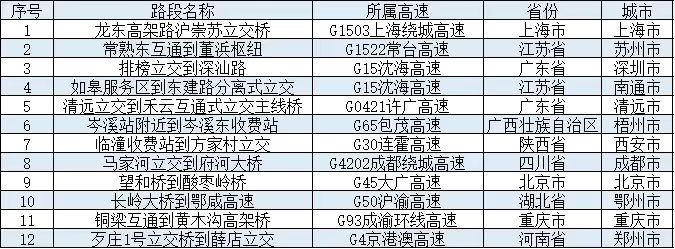 清明節(jié)期間,全國高速公路預(yù)計易發(fā)生擁堵緩行的路段,如表1所示。