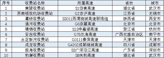 清明節(jié)期間,全國高速公路預(yù)計易發(fā)生擁堵緩行的收費站,如表2所示。