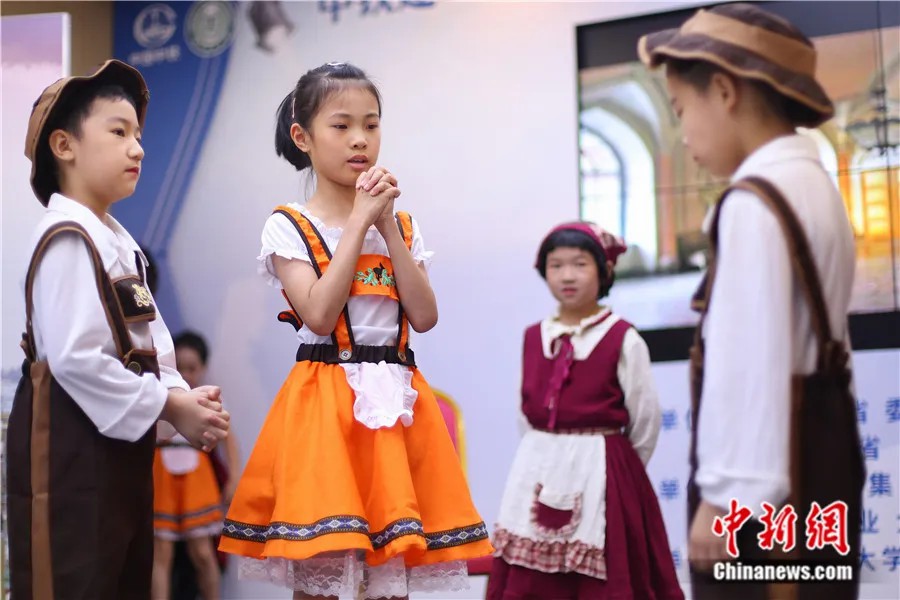 兒童在江蘇南京表演莎士比亞戲劇《威尼斯商人》。泱波 攝
