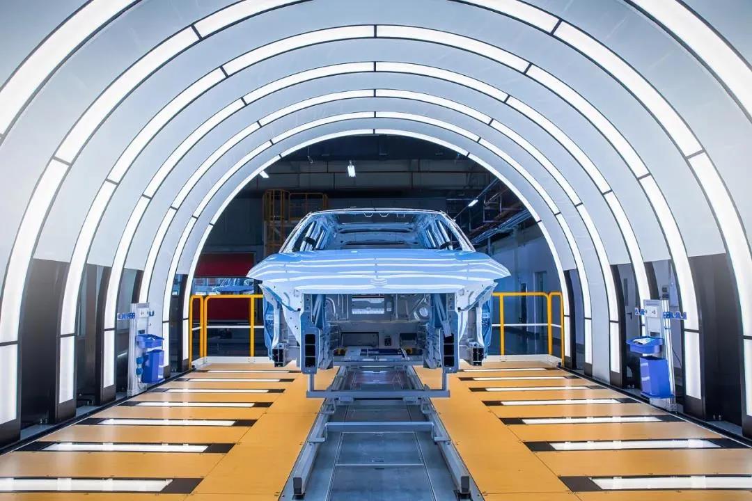 在江淮蔚來先進(jìn)制造基地里拍攝的智能新能源汽車生產(chǎn)線。張大崗攝
