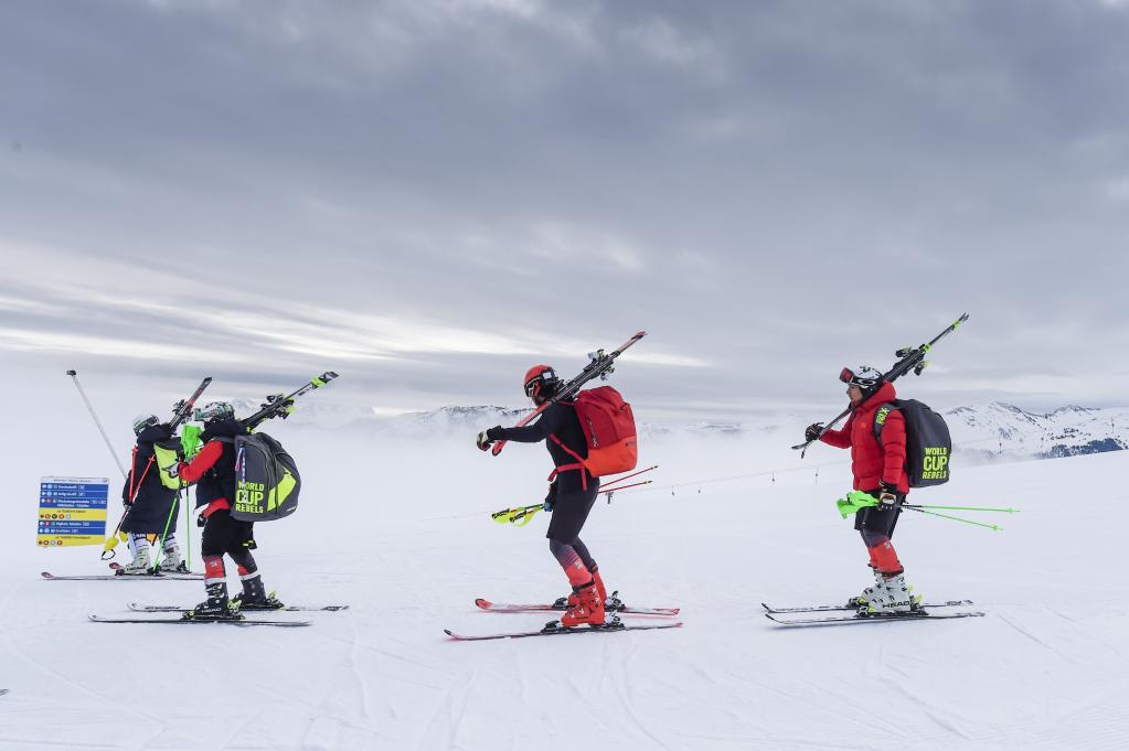 資料圖:2019年4月5日,中國國家高山滑雪集訓(xùn)隊(duì)在奧地利蒂羅爾州一處雪場內(nèi)前往訓(xùn)練比賽區(qū)域。新華社記者 郭晨 攝