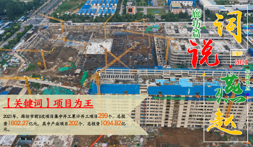 2021年,廊坊市以項目建設擴大有效投資,牢固樹立“項目為王”理念,前3次項目集中開工累計開工項目299個,總投資1602.27億元,其中產業(yè)項目202個,總投資1094.82億元。