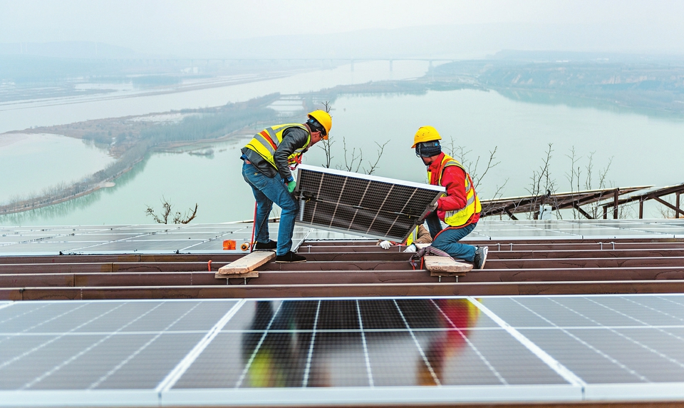 1月7日,施工人員在高空中安裝光伏板。芮城縣莊上村在“2MW光儲直柔直流微網”項目建設中,嚴格按照安全施工要求,對高空作業(yè)人員使用的安全帶、頭盔、手套等設備,作業(yè)之前逐個檢查,并對高空作業(yè)人員進行安全常識教育,做到安全生產萬無一失。(薛俊攝)