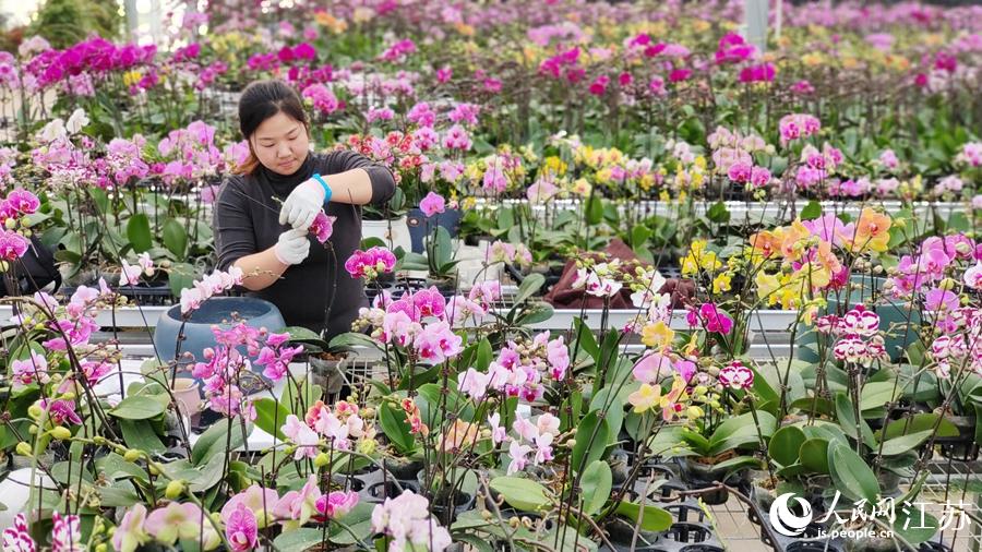 基地員工忙著對蝴蝶蘭進行組盆。丁華明攝人民網(wǎng)宿遷1月13日電 (黃啟源)臨近春節(jié),江蘇沭陽縣耿圩鎮(zhèn)的蝴蝶蘭基地里百花爭妍,恰似彩蝶起舞。作為當?shù)靥m花產(chǎn)業(yè)化示范園區(qū),這里培植有60余個蘭花品種,目前年實現(xiàn)產(chǎn)值過億元。基地年累計用工600余人,其中相當一部分是當?shù)氐褪杖霊?,可為每人每年增加工資性收入4萬余元。