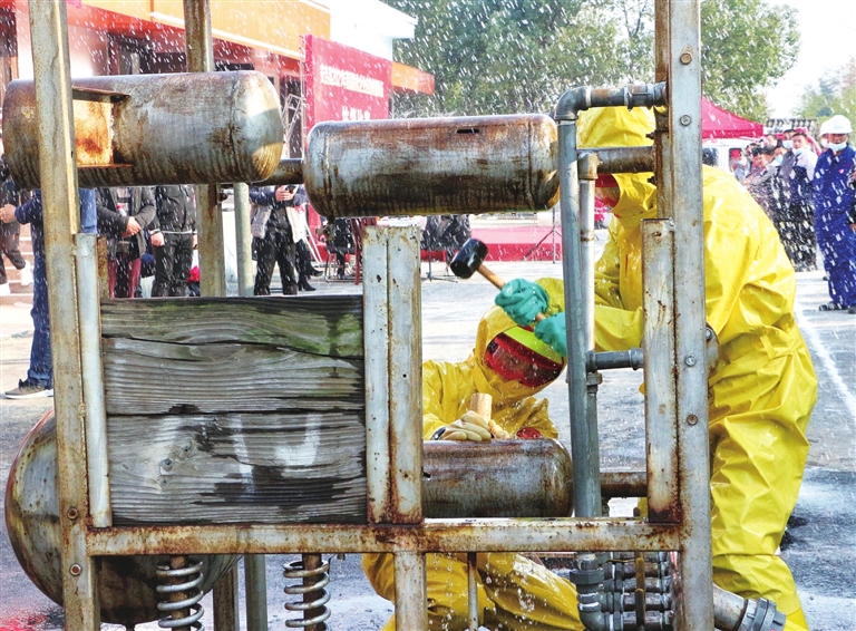 湖州市安吉縣應(yīng)急管理局近日聯(lián)合安吉縣總工會開展全縣首屆?;髽I(yè)應(yīng)急救援隊伍技能比武,20支?;髽I(yè)應(yīng)急救援隊伍80余人參加。比賽內(nèi)容包括原地油桶滅火單項賽、消防堵漏作業(yè)團(tuán)體賽等。(徐薇、王豆豆)