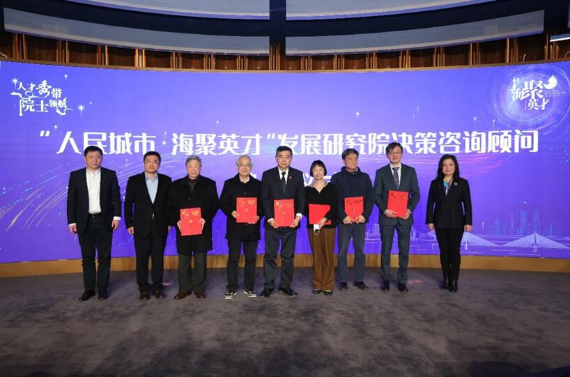 會(huì)上,人民城市海聚英才發(fā)展研究院舉行了決策咨詢顧問(wèn)聘任儀式。市委組織部人才處處長(zhǎng)譚樸珍、楊浦區(qū)委書記謝堅(jiān)鋼為金力、陳杰、汪品先、莊松林、黃崇祺、褚君浩院士頒發(fā)聘書;楊浦區(qū)人大常委會(huì)主任程繡明、區(qū)委副書記周海鷹為林元培、穆穆、常青、李兆申、徐祖信、李俊院士頒發(fā)聘書。