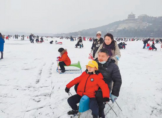 圖為游客在頤和園樂享冰雪運(yùn)動(dòng)。作為第八屆北京市屬公園冰雪游園會(huì)活動(dòng)內(nèi)容之一的頤和園“圓夢(mèng)冬奧,相約頤和”項(xiàng)目,今年首次設(shè)置了雪上娛樂項(xiàng)目,讓市民不出京城就可親身感受冰雪魅力。 本報(bào)記者 吳鏑攝