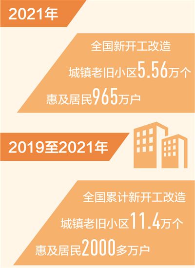 本報北京1月21日電 (記者丁怡婷)記者從住房和城鄉(xiāng)建設部獲悉:2021年,我國全面推進城鎮(zhèn)老舊小區(qū)改造,全國新開工改造城鎮(zhèn)老舊小區(qū)5.56萬個,惠及居民965萬戶。