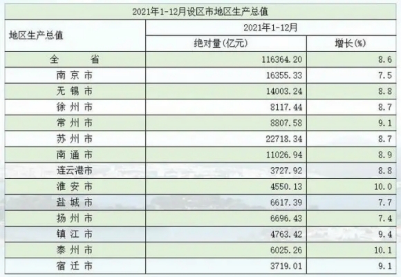 從目前國(guó)內(nèi)已公布 2021年經(jīng)濟(jì)數(shù)據(jù)的省市來看,去年經(jīng)濟(jì)總量前五名基本確定,分別為廣東、江蘇、山東、浙江、河南。江蘇以116364.2億元位列第二,邁上11萬億元新臺(tái)階。根據(jù)地區(qū)生產(chǎn)總值統(tǒng)一核算結(jié)果,2021年江蘇全省實(shí)現(xiàn)生產(chǎn)總值116364.2億元,按不變價(jià)格計(jì)算,比上年增長(zhǎng)8.6%,兩年平均增長(zhǎng)6.1%。