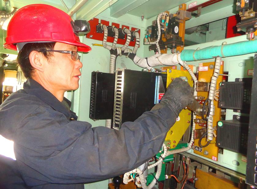 在交車(chē)組,劉志遠(yuǎn)負(fù)責(zé)電力機(jī)車(chē)中修后所有部件的調(diào)試檢查、高低壓試驗(yàn)和各類(lèi)故障的排查處理。