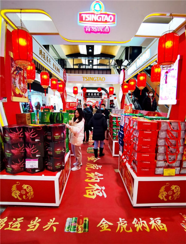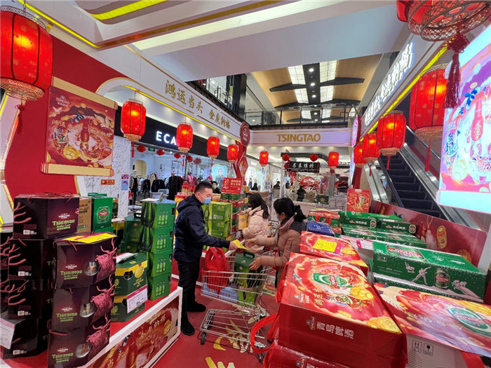而青島啤酒“百年之旅“憑借獨(dú)一無(wú)二的珍惜原材、不惜工本的耗時(shí)慢釀、與無(wú)與倫比的琥珀原色和恒久回味,也在春節(jié)超高端市場(chǎng)上有叫好叫座?!比ツ曜咴L客戶就送的‘百年之旅’,有特色又有排面,客戶反饋特別好,今年特地團(tuán)購(gòu)一批,公司年會(huì)聚餐也喝他?!澳惩赓Q(mào)公司采購(gòu)部的劉先生,正在和超市的經(jīng)理談大宗采購(gòu),作為青島”特產(chǎn)“的青島啤酒,是他們每年過(guò)年的首選禮品,”還有今年推出虎年版的百年鴻運(yùn),特別新年應(yīng)景,配上特有的搖擺蓋開(kāi)起來(lái)特別有氣氛,喜慶。“