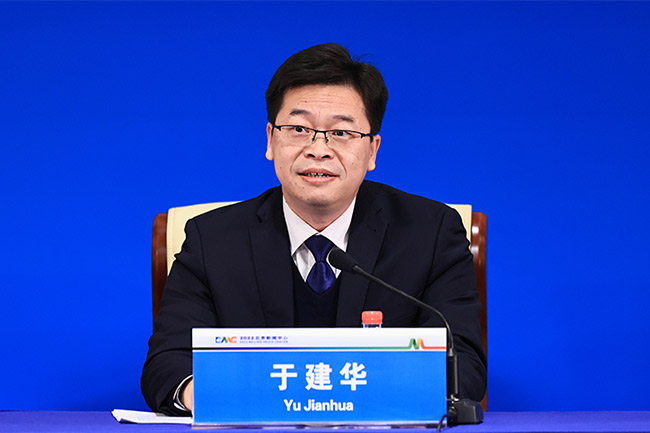 北京市生態(tài)環(huán)境局黨組成員、副局長(zhǎng)、新聞發(fā)言人于建華介紹北京生態(tài)文明建設(shè)工作的整體情況。2022北京新聞中心供圖