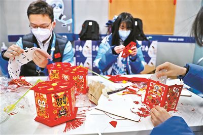 昨天是中國(guó)的傳統(tǒng)節(jié)日元宵佳節(jié),國(guó)家體育館開展了豐富多彩的慶?;顒?dòng),當(dāng)天場(chǎng)館餐廳提供了湯圓,場(chǎng)館禮賓部工作人員向外賓介紹中國(guó)吃湯圓的由來(lái)和寓意,并邀請(qǐng)大家品嘗。在志愿者之家內(nèi),彩燈高懸,充滿歡聲笑語(yǔ),志愿者們做燈籠、猜燈謎,共同度過(guò)一個(gè)歡樂祥和的元宵節(jié)。圖為冬奧志愿者在制作花燈。文并攝/本報(bào)記者 黑建軍