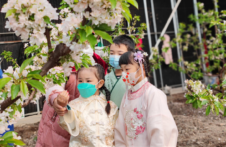 走進(jìn)茶淀街道孟家瞿卩村種植戶于長晶的大棚,仿佛置身于花海之中。大棚外春寒料峭,大棚內(nèi)溫度適宜、花開正艷。櫻桃花盛開的美景吸引了不少游客前來打卡拍照,有的小游客為了拍出好看的照片,還特意穿來漢服來和櫻桃花合影拍照。農(nóng)戶搶抓農(nóng)時(shí),辛勤勞作,確保今年的櫻桃豐產(chǎn)豐收?!皺烟夜芾硇枰饲诳?,不能偷懶?!庇陂L晶一邊忙著給櫻桃樹修剪枝條一邊說道。這幾天,她和家人每天都很忙碌,盡管勞累,但心里卻很高興。于長晶說:“我們今年借助科學(xué)管理,有的大棚里的櫻桃已經(jīng)結(jié)出果實(shí)。大概到3月下旬,大片櫻桃都成熟了,到時(shí)候游客就可以來采摘了。”