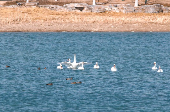 候鳥飛躍山川湖泊,帶來春的訊息。城南最大濕地南海子如今已水鳥翔集,北京地區(qū)有分布的三種野生天鵝上周末同時出現(xiàn),其中,疣鼻天鵝為我國數(shù)量最少的野生天鵝,全國僅存約3000只。