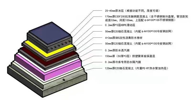 混凝土冰板層這道工序尤為重要,施工也最為艱苦。對李燕敏來說,冰板構(gòu)造施工就如同制作“千層糕”:從下向上鋪設(shè)加熱層、防潮隔汽層、保溫層、隔離層、防水層、混凝土冰板層……55厘米厚的混凝土整整有9層,整個地面平整度要達到設(shè)計要求的精度,每個環(huán)節(jié)不容有絲毫閃失。