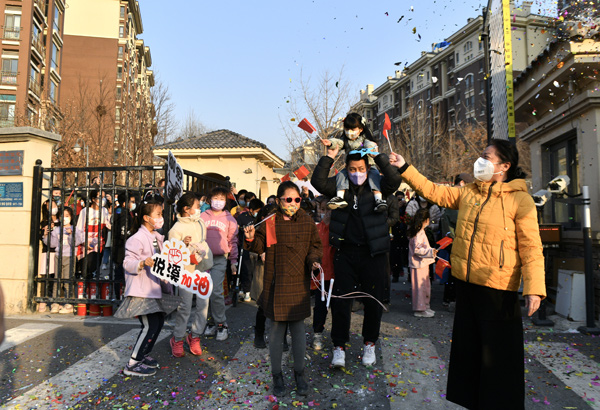 在潤澤悅溪小區(qū)門口,工作人員快速拆除快遞架,小區(qū)大門緩緩打開,居民們興高采烈地結(jié)伴走出小區(qū)。社區(qū)黨委書記、居委會主任分別向志愿者代表頒發(fā)證書并送上鮮花,向入駐社工、民警、機(jī)關(guān)工作人員獻(xiàn)上鮮花,為社區(qū)衛(wèi)生服務(wù)中心和來廣營派出所送錦旗,為愛心企業(yè)頒發(fā)獎(jiǎng)牌。居民代表向社區(qū)黨委及小區(qū)物業(yè)送錦旗。3月8日也是國際婦女節(jié),地區(qū)特意制作了電子賀卡,為每位女性同胞送上節(jié)日祝福。