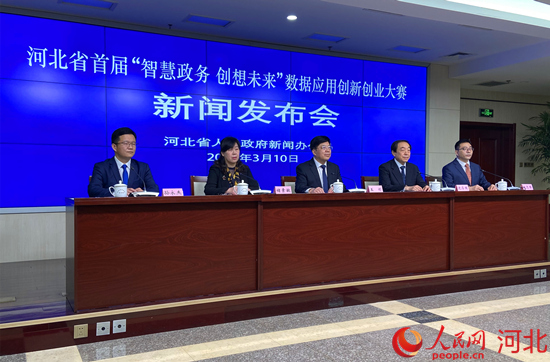 河北省首屆“智慧政務(wù) 創(chuàng)想未來”數(shù)據(jù)應(yīng)用創(chuàng)新創(chuàng)業(yè)大賽新聞發(fā)布會(huì)現(xiàn)場(chǎng)。 人民網(wǎng) 付兆颯攝