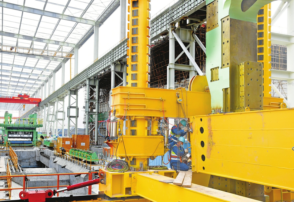 3月12日,中國寶武太鋼集團(tuán)4300mm中厚板生產(chǎn)線智能化升級改造工程現(xiàn)場,施工人員正在抓緊進(jìn)行設(shè)備安裝。太鋼4300mm中厚板生產(chǎn)線智能化升級改造占地面積約22.54萬平方米,是山西省、中國寶武綠色精品重點工程,今年8月份投產(chǎn)后預(yù)計每年可生產(chǎn)70萬噸不同規(guī)格資源節(jié)約型特殊不銹鋼、特種合金和優(yōu)質(zhì)碳鋼等高端板材,實現(xiàn)銷售收入80億元,進(jìn)一步提升企業(yè)競爭力。(王旭宏攝)